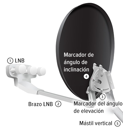 Descarga un PDF (en inglés) de los ángulos de acimut, elevación e inclinación para apuntar tu antena parabólica portátil: