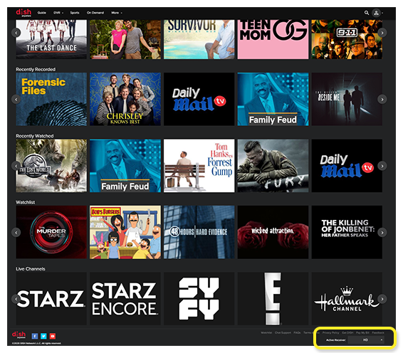 Desplázate hasta la parte inferior de la página y selecciona el receptor actual.