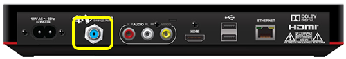 Atornilla el cable coaxial en el puerto designado “Satellite In” y asegúrate que el cable esté conectado firmemente a la pared.